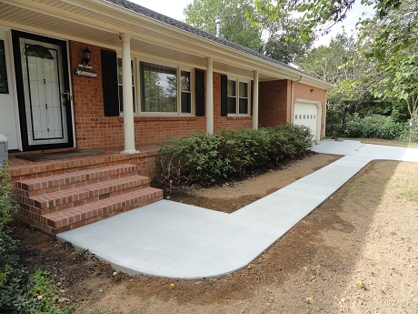 New brick steps and concrete sidewalk on Cul-de-sac in Virginia Beach